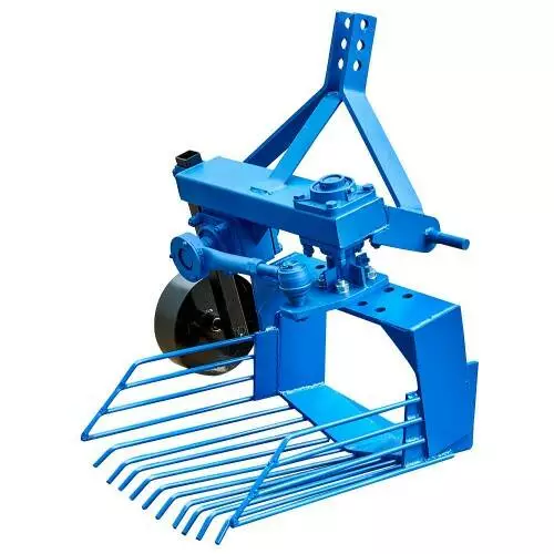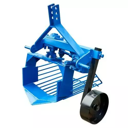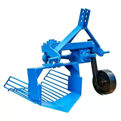 Картофелевыкапыватель навесной вибрационный используется для механизированной уборки картофеля и других корнеплодов, высаженных рядным способом с глубиной залегания до 15 см. Устанавливается на 3-точечную навесную систему, с помощью карданного вала подключается к валу отбора мощности трактора. Отличается простотой конструкции и высокой надежностью, оснащен встроенным виброредуктором, имеет усиленное крепление стойки виброножа. Вибронож разбивает клубненосный пласт почвы, отсеивает мелкие фракции грунта и укладывает корнеплоды на поверхность поля. Глубина выкапывания регулируется с помощью опорного колеса.