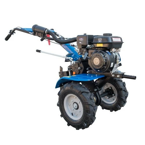 Этот мотоблок имеет кронштейн для переднего навесного оборудования, например, косилки, которую можно легко установить на кронштейн и привести в действие от свободного ручья на приводном шкиве. Регулировка руля по высоте и углу поворота быстрая и удобная. Ширина захвата разборной фрезы может принимать значения 570 и 810 мм.