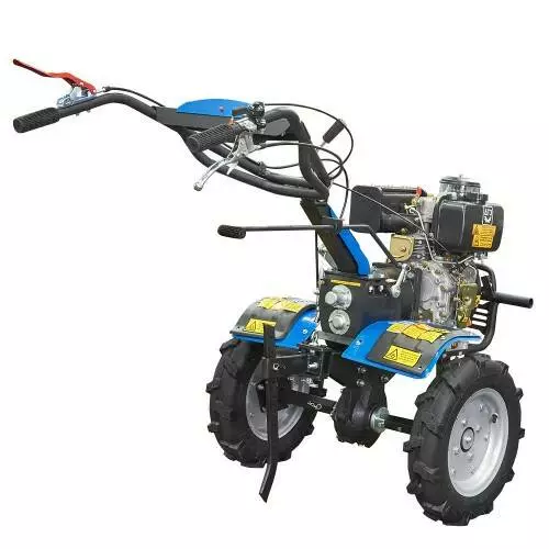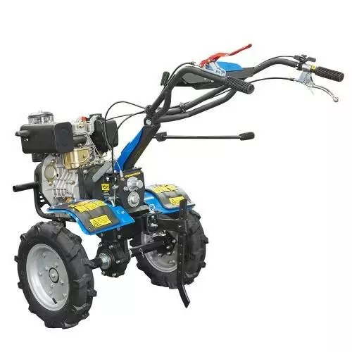 Дизельный двигатель ощутимо экономнее бензинового, лучше выдерживает длительную работу под нагрузкой, сохраняет высокий крутящий момент при снижении оборотов, а значит, и тягу. Он более долговечный и экологичный, не требует регулировки карбюратора и системы зажигания, для облегчения запуска при низкой температуре оснащен декомпрессором. Благодаря большему весу улучшается сцепление транспортных колес с дорожным покрытием или почвой. Этот мотоблок полностью подходит не только для работы в домашних хозяйствах, а и может профессионально использоваться на огородных, садовых и тепличных комплексах, а также как средство для перевозки грузов на специальном прицепе.