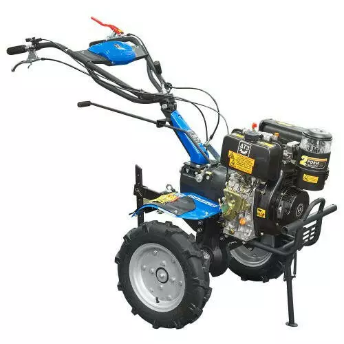 Дизельний двигун відчутно економніший за бензиновий, краще витримує тривалу роботу під навантаженням, за зниження обертів зберігає високий крутний момент, а отже, і тягу. Він більш довговічний і екологічний, не потребує регулювання карбюратора й системи запалювання, для полегшення запуску за низької температури оснащений декомпресором. Завдяки більшій вазі покращує зчеплення транспортних коліс із дорожнім покриттям або ґрунтом. Цей мотоблок цілком придатний не тільки для застосування в приватних господарствах, а й для професійного використання на городніх, садових і тепличних комплексах, а також як засіб для перевезення вантажів на спеціальному причепі.