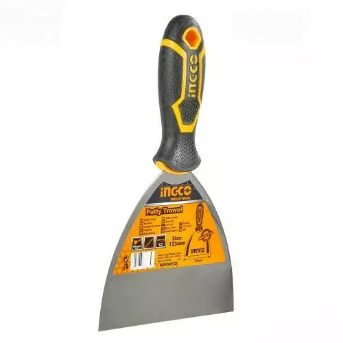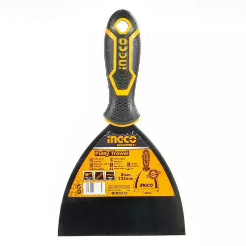 Шпатель 125 мм INGCO INDUSTRIAL використовується при малярних і оздоблювальних роботах з метою нанесення і розрівнювання будівельних і клейових складів.