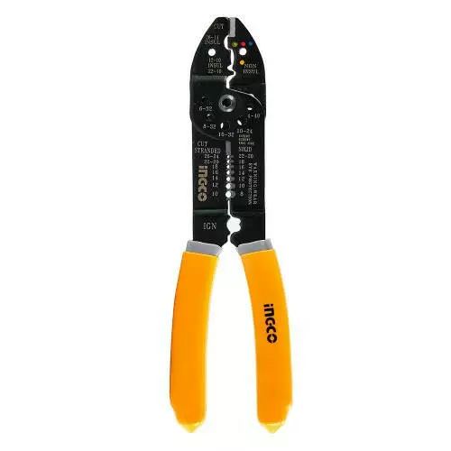 Стрипер багатофункціональний 215 мм INGCO застосовується для зачистки та різання різних видів кабелю, а також для відрізання латунних болтів, обтиску ізольованих і автомобільних клем. Він допоможе швидко і акуратно обробити дроти перед їх з'єднанням без пошкодження.