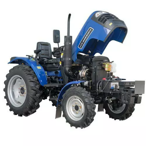 Трактор оснащен 3-цилиндровым дизельном двигателем модели ДД390 с рабочим объемом 1909 см3 и мощностью 24 к.с. (17,6 кВт). Система впрыскивания обеспечивает эффективность и экономичность работы. Воздух проходит через контактно-маслонный фильтр с прозрачным циклоном и металлической сеткой, что гарантирует качественную очистку. Для облегченного запуска двигателя в холодное время используется нагревательная спираль в впускном коллекторе. Объем топливного бака составляет 32 литра.