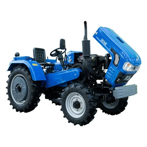 Доступный и надежный полноприводный трактор DW 244B мощностью 24 л.с., отличительная особенность которого - клиноременная передача от двигателя к коробке передач. Трактор имеет рамную компоновку. Двигатель одноцилиндровый с горизонтальным расположением цилиндра и водяным охлаждением с принудительной циркуляцией. Наличие ременной передачи позволило упростить конструкцию, значительно облегчить проведение работ по обслуживанию и ремонту, снизить эксплуатационные расходы. Эластичность ременной передачи предотвращает поломки двигателя и трансмиссии из-за перегрузки или неумелого выбора скорости. Трактор оснащен тормозами барабанного типа, двухдисковым сцеплением сухого типа, шестеренчатой коробкой передач на 8 скоростей вперед и 2 назад, валом отбора мощности. Навесная система стандартная 3-точечная с гидроприводом, имеется электророзетка.