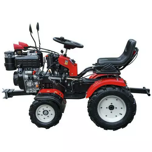 KENTAVR 10D/1350 — це малогабаритний трактор із потужним одновимірним дизельним двигуном об’ємом 418 см³ та потужністю 10 к.с. Його 4×4 привод забезпечує впевнену роботу навіть на складних ділянках із обмеженим простором. Цей мінітрактор ідеально підходить для садівництва, невеликих фермерських господарств і комунальних робіт.