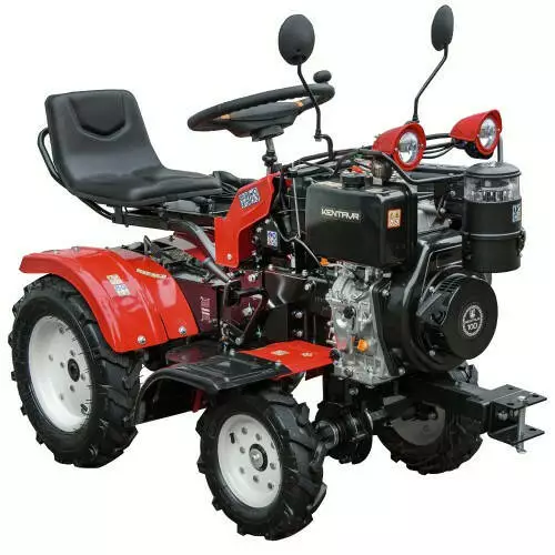 Трактор обладнаний мотоблочною буксирувальною зчіпкою, що дозволяє приєднувати навісне обладнання. Металеві передні та задні крила підвищують захист механізмів і забезпечують довговічність конструкції.