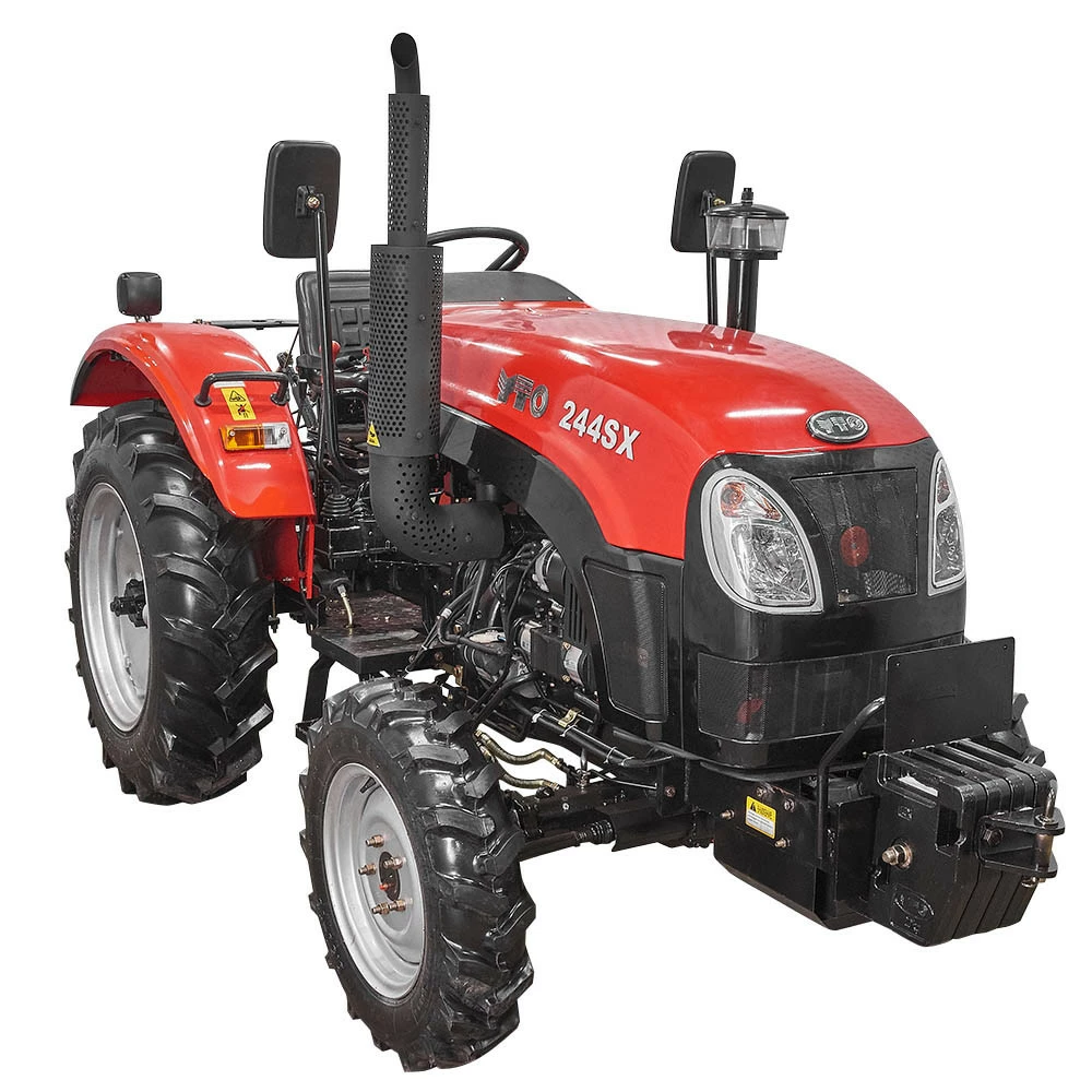 Описание минитрактора YTO 244SX Полноприводный пропашной трактор мощностью 24 л.с. в базовой комплектации. Обладает всеми преимуществами универсального трактора, и вдобавок к этому оборудован гидроусилителем рулевого управления, дополнительным гидравлическим выходом, регулируемым водительским сидением на амортизаторах, счетчиком моточасов, зеркалами заднего вида, и имеет увеличенную ширину передних и задних колес.