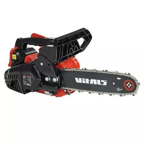 Бензопила ланцюгова Vitals Master BKZ 2510s – оснащена надійним двотактним двигуном із повітряним охолодженням об’ємом циліндра 25,0 см3 та потужністю 1,1 к.с. (0,8 кВт).