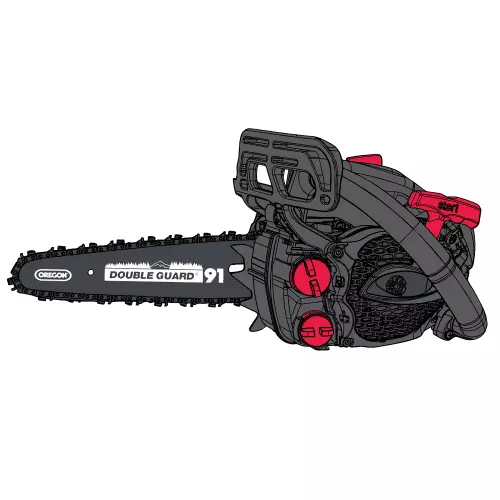 Принцип дії виробу базується на почерговому різанні деревини лезами ланок ланцюга, який рухається у напрямних із великою швидкістю. На холостих обертах ланцюг не рухається. Для безпечного користування виріб має гальмо пиляльного ланцюга, яке встановлене для захисту оператора від віддачі (несподіваний різкий рух пили під час роботи).