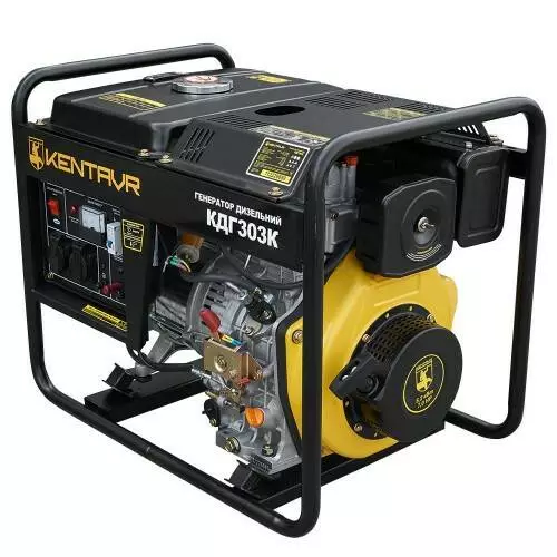 У генераторі Кентавр КДГ-303К застосовується чотиритактний дизельний двигун потужністю 6 к.с. Двигун виготовлений у заводських умовах із високим рівнем контролю якості. Інноваційна конструкція кришки стартера та крильчатки охолодження запобігає перегріву двигуна. Шум та вібрація при роботі додатково гасять демпферні опори, якими двигун кріпиться до жорсткої металевої рами.