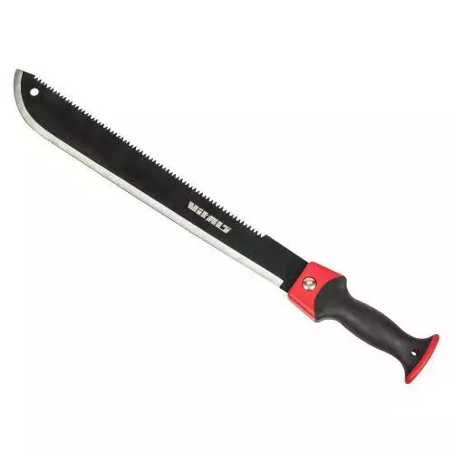 Мачете Vitals MT-345-01 — надійний, зручний багатофункціональний інструмент. Призначений для вирубування бур’яну, достатньо великих сільськогосподарських та диких рослин, молодої порослі, відростків коренів, обрізання гілок та розпилу дрібних дощок. Це чудовий інструмент для догляду за садом, територією вздовж парканів та будівель. Підходить також для оброблення великих шматків м’яса.