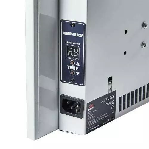 Теплова панель рівномірно розподіляє тепло, не пересушує повітря та створює комфортну температуру для тривалого перебування в приміщенні. Обігрівач конвекційний Vitals СHM-1000s працює безшумно та без неприємного запаху, що робить його придатним для спальні або робочого кабінету.