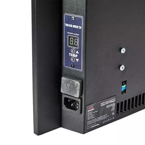 Стильний дизайн керамічної панелі легко вписується в будь-який інтер’єр, підкреслюючи сучасність та естетику приміщення. Легкість та продумана конструкція дозволяють швидко встановити обігрівач на стіну або підлогу, підлаштовуючи його під потреби конкретного простору. Vitals CHP-700swm не займає багато місця і виглядає акуратно навіть у невеликих кімнатах.