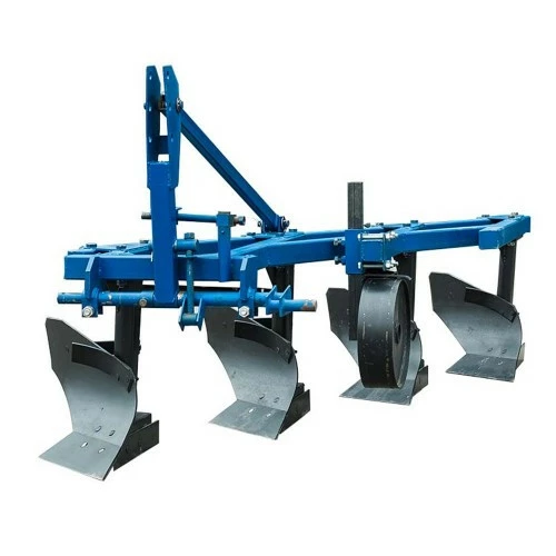 Плуг лемешный четырехкорпусный посилений призначений для основної оранки з повним обертанням пласта ґрунту. Лемеші плугів подовжені. Відвал збільшено з задньою опорою і додатковим стерневым отвальчиком для завороту пласта. Польові дошки збільшеної довжини. Стійки підвищеної жорсткості з зварної трубою змінного перерізу, що кріпляться до рами в трьох точках. Рама зварна з труби квадратного перетину. Кріплення рами 3-точкове. Глибина оранки регулюється посиленим опорним колесом за допомогою гвинта. За допомогою додаткових регулювальних гвинтів можливо здійснити більш точні налаштування агрегату, що в свою чергу забезпечить гарний перевертання пласта ґрунту.