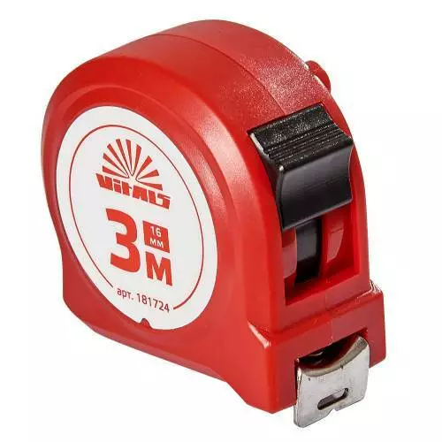 Вимірювальна рулетка 3 м × 16 мм Vitals призначена для вимірювання довжини під час проведення будівельних або ремонтних робіт.