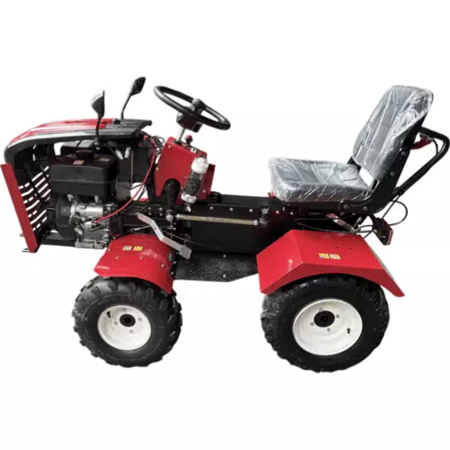 Мінімальний радіус розвороту становить 2,3 м, тому міні-трактор зручно використовувати на невеликих ділянках. Колісна база становить 800 мм, що забезпечує стабільність під час руху.