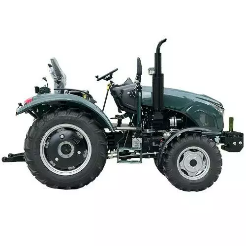 Механічна трансмісія з формулою (4+1)×2 пропонує 10 передач, що дає змогу вибирати оптимальну швидкість для будь-якої задачі, від повільної обробки ґрунту до швидкого транспортування. Однодискова муфта зчеплення забезпечує плавне перемикання, а гідрооб’ємне рульове управління (ГОРУ) з регульованою за висотою колонкою робить маневрування легким і точним. Повний привод 4×4 і блокування диференціала заднього мосту дозволяють трактору впевнено рухатися по вологих чи нерівних поверхнях. Підвісні педалі та акселератор нового зразка додають зручності, знижуючи навантаження на оператора.