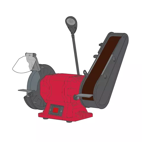 Верстат має міцну конструкцію корпусу, яка гарантує довговічність та надійність під час експлуатації. Абразивний круг діаметром 150 мм та завтовшки 20 мм із зернистістю 36 забезпечує ефективне зняття матеріалу, а стрічка завширшки 50 мм та завдовжки 686 мм із зернистістю 80 ідеально підходить для доведення та шліфування.