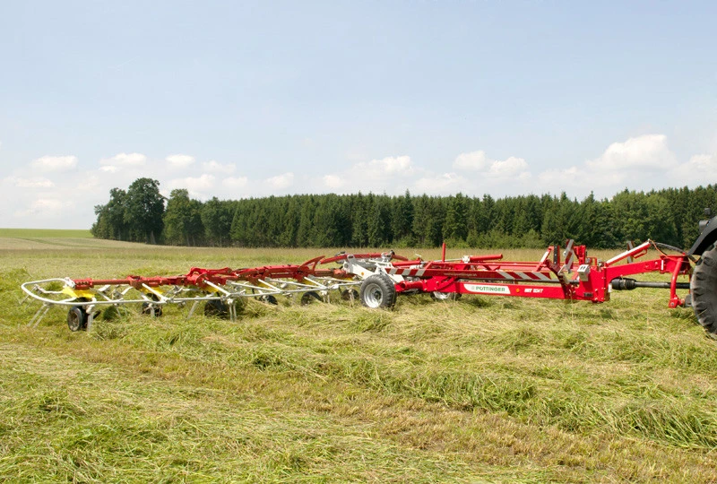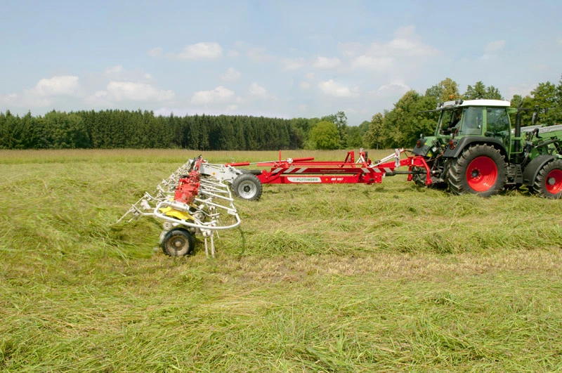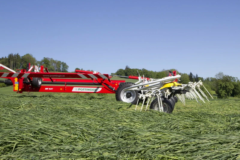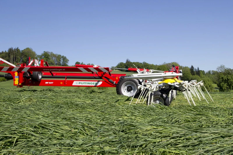 Причіпні ворошилки HIT T компанії POTTINGER поєднують в собі високу продуктивність з інтелігентної технікою. Обидві моделі оснащені вишуканою кінематикою підйому, що дозволяє просто і швидко підняти ворошилку при повороті на краю поля.