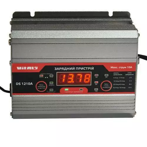 Зарядний пристрій ТМ «Vitals», моделі «DS 1210A» призначений для заряджання свинцево-кислотних акумуляторних батарей,акумуляторних батарей GEL, автомобілів, мотоциклів, тракторів, катерів, газонокосарок, снігоходів, гідроциклів, іншого промислового й побутового обладнання.